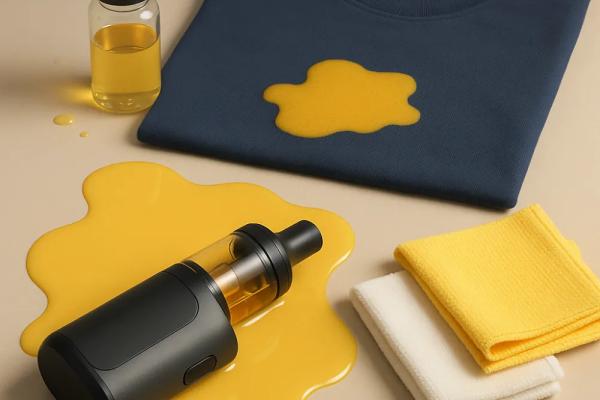 액상이 옷에 묻으면 기름때처럼 얼룩이 생길 수 있어요. VG 성분이 끈적하거든요. 먼저 키친타월로 최대한 액상을 흡수시키고, 미지근한 물에 주방세제를 풀어서 문질러 주세요. 그 다음 평소처럼 세탁하면 대부분 깨끗하게 빠져요.